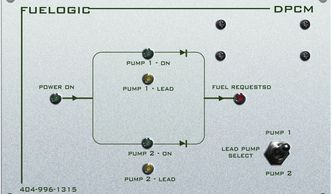 High reliability, mission critical full function fuel transfer / return PCB based pump control module based upon integrated relay logic. FCM can also act as "smart" pump control for bulk storage tanks from pumpless tankers by example. FCM and its fascia and pump contactors can be supplied in a compact cabinet. Alternatively both can be mounted in most machine control panels where space exists. Fuelogic control panels are vibration isolated.